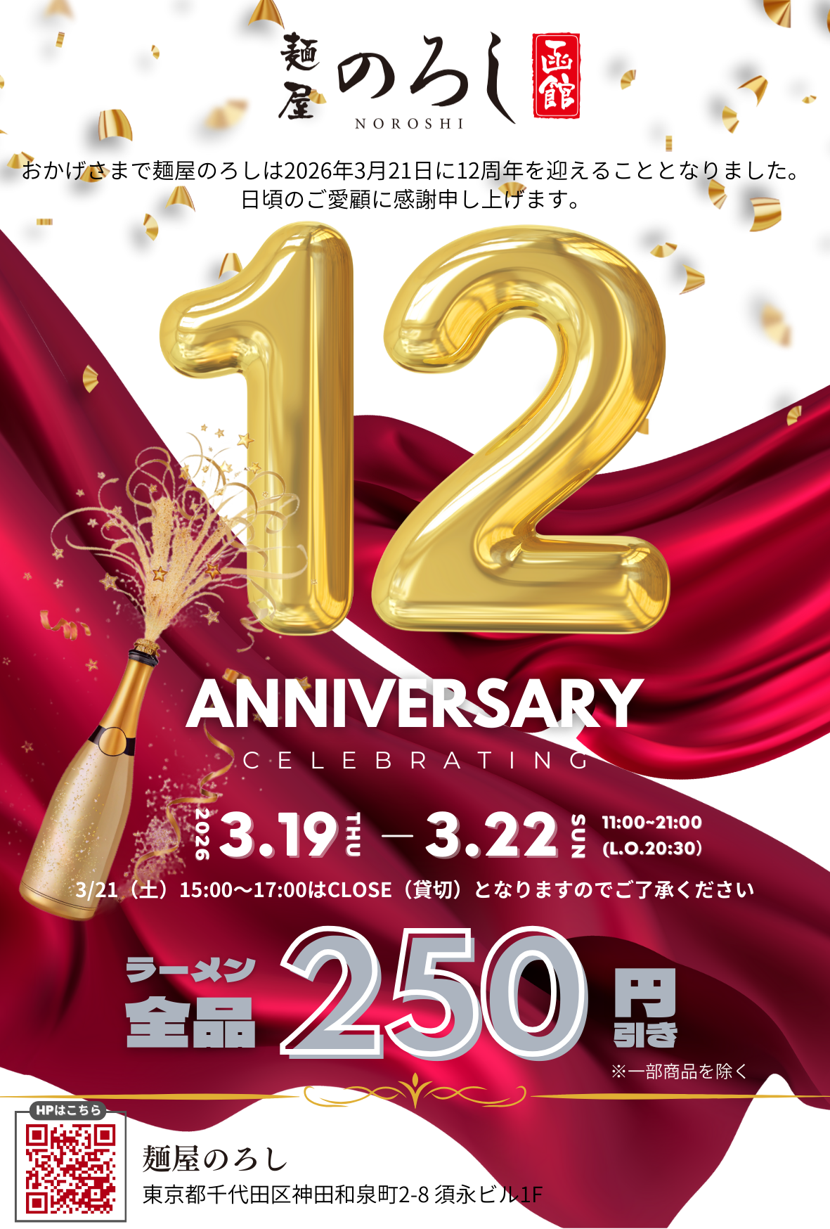 【麺屋のろし 12周年イベント開催のお知らせ】